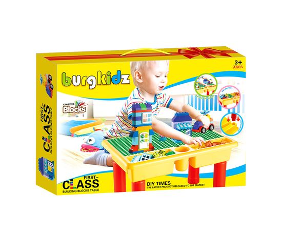 В наборе: стол для конструирования + конструктор 70 элементов.
