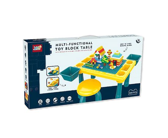 В наборе: стол для конструирования + 1 табурет + конструктор 300 элементов.