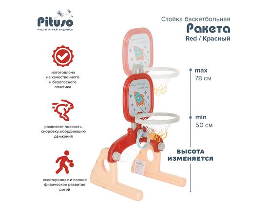 PITUSO Стойка баскетбольная Ракета (с кольцебросом,футб.воротами) Red/Красный (50*47*110h)