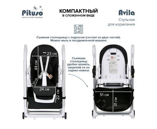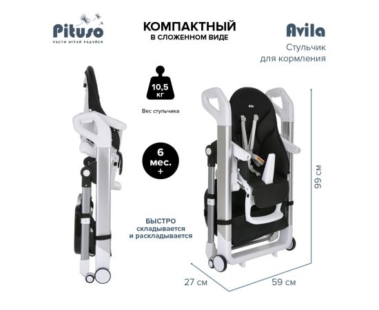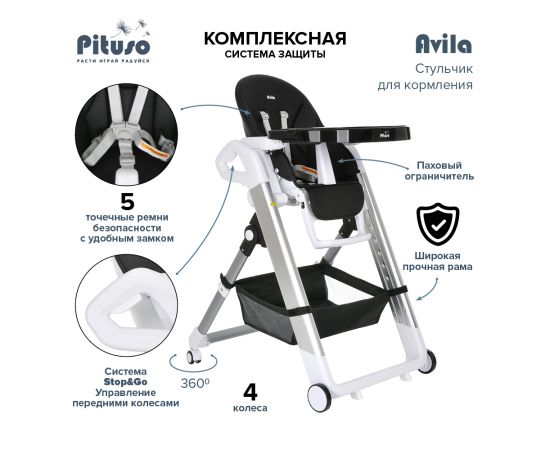 Детский стульчик для кормления Pituso Avila сочетает в себе стильный дизайн и удобство в использовании, делает уход за ребенком комфортным и безопасным.