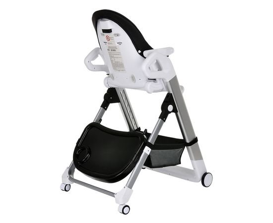 Столешницу можно полностью снять и прикрепить сзади на специальные крючки на раме.Чехол выполнен из качественной экокожи. Столик состоит из двух частей, верхний поднос снимается и можно мыть в посудомоечной машине.Стульчик прост в эксплуатации: легко передвигается, надежно фиксируется с помощью тормозов на колесиках, быстро складывается и раскладывается. Оснащён системой Stop&Go: если нажать кнопки, расположенные на ручках стула, то его легко перемещать по всей квартире на двух парах колёс, одна из которых, для лучшей маневренности, сконструирована поворотной. Если же не использовать кнопки системы Stop&Go, то стул стоит на месте как влитой.