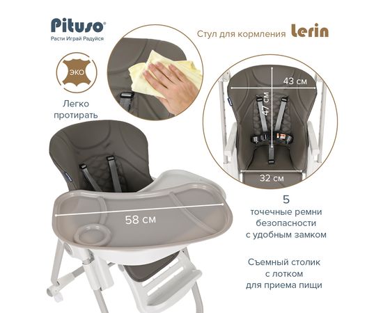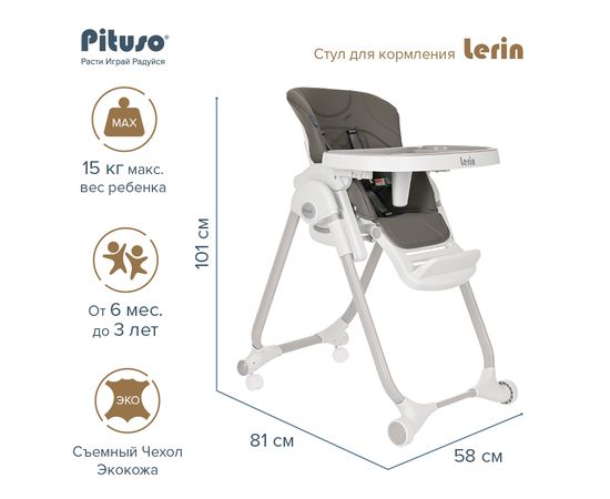 PITUSO Стул для кормления Lerin Grey/Серый ECO-кожа