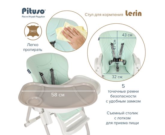 PITUSO Стул для кормления Lerin Mint/Мятный ECO-кожа