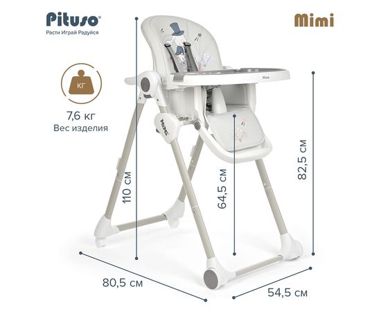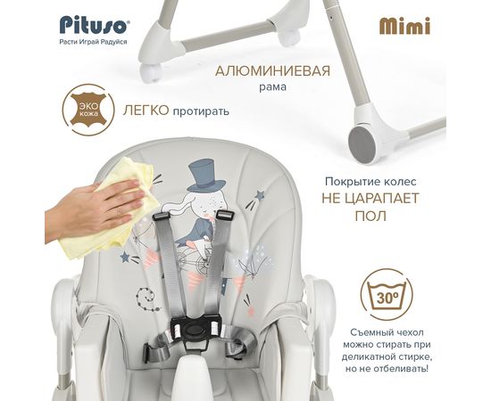 PITUSO Стул для кормления Mimi Grey Rabbit/Серый Зайка, ECO-кожа