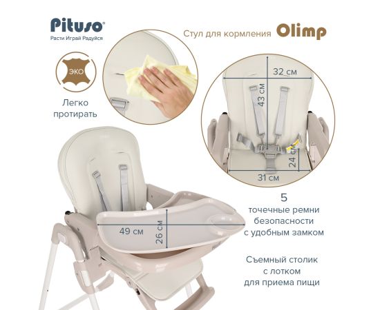 PITUSO Стул для кормления Olimp Milk White/Молочно-белый, ECO-кожа