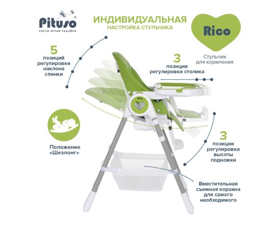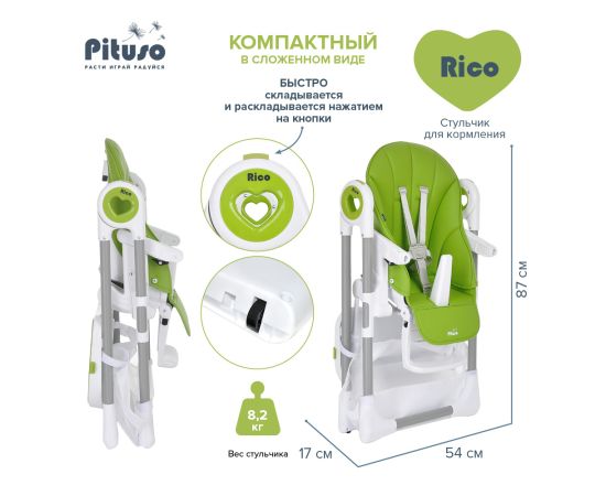 Детский стульчик для кормления Pituso RICO – сочетает в себе стильный дизайн и удобство в использование, делает уход за ребенком комфортным и безопасным.