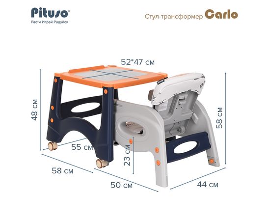 Стул-трансформер Pituso Carlo обновленная модель 2023 года представляет собой идеальную конструкцию 2 в 1.