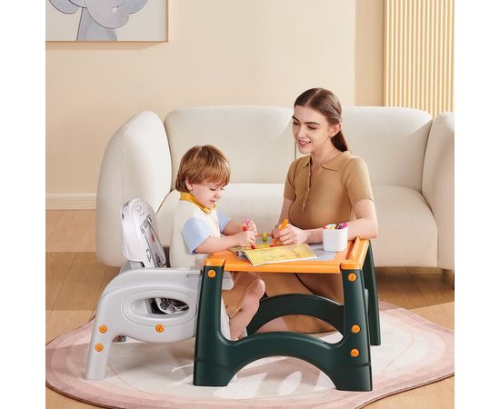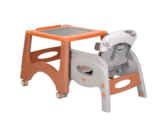 Трансформируется в отдельную комбинацию – стол + стул, за которым Вашему малышу будет интересно играть и заниматься творчеством.