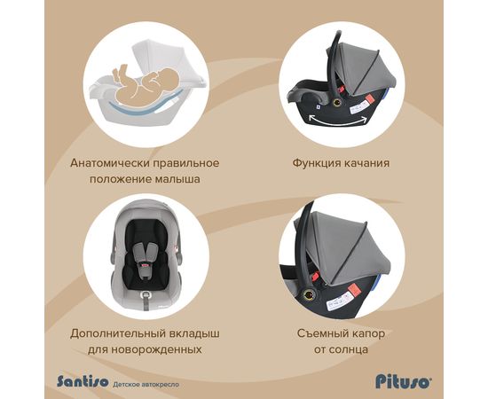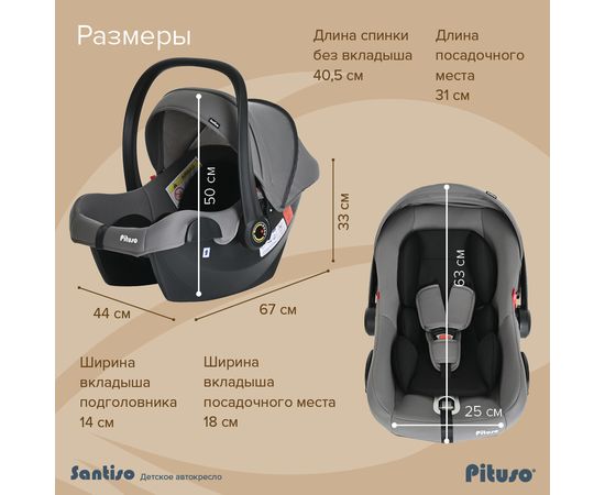 Детское комфортное автокресло Pituso Santiso с уютной глубокой чашей. Предназначено для пассажиров с рождения примерно до года.