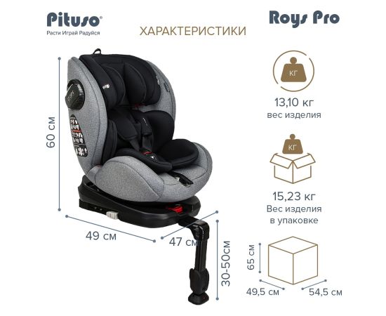 Модель Pituso Roys Pro – это универсальное поворотное кресло на 360° кресло, которое будет расти вместе с ребенком!