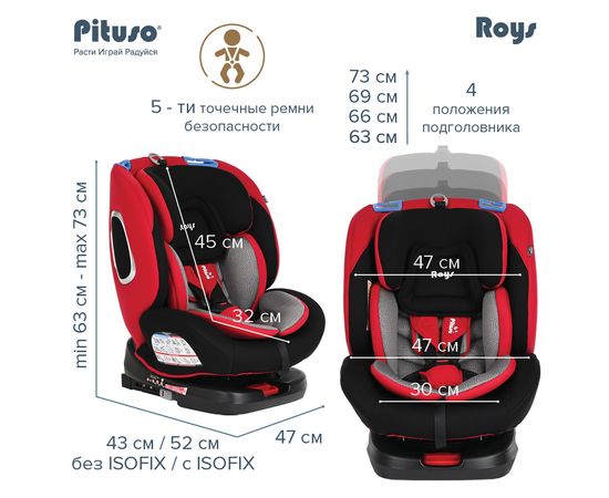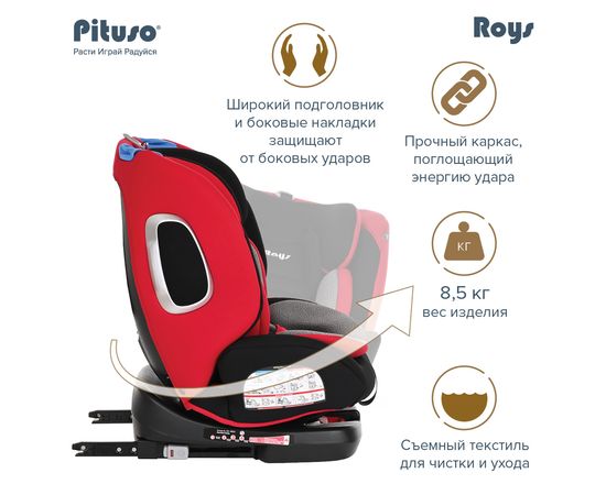 Модель Pituso Roys – это универсальное поворотное кресло на 360° кресло, которое будет расти вместе с ребенком!