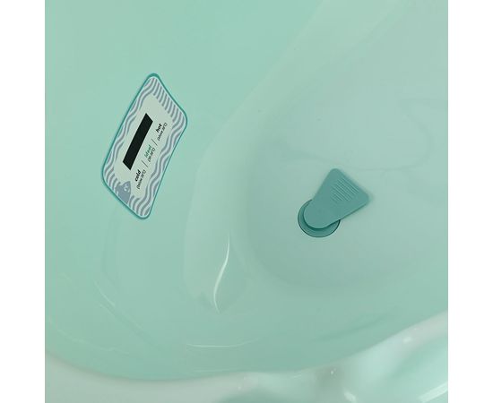 Не нужно переворачивать тяжелую ванночку, чтобы вылить воду — предусмотрена сливная пробка. Встроенный термометр с понятными обозначениями поможет определить идеальную температуру воды для купания малыша (36-38°С). Предусмотрено отверстие для крючка, чтобы ванночку можно было повесить. Для купальных принадлежностей предусмотрены полочки.