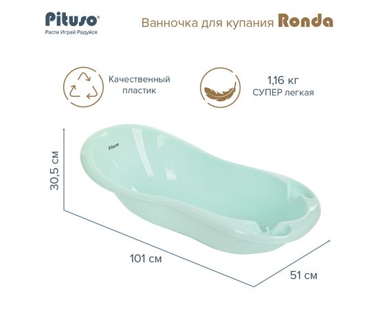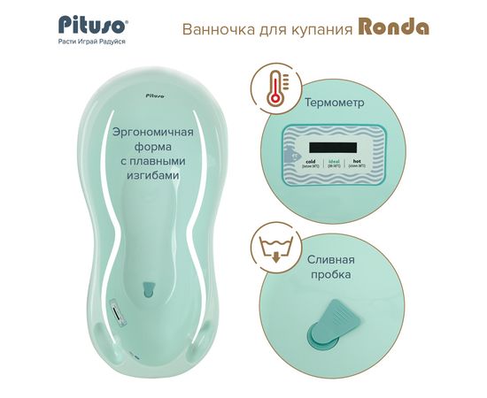 PITUSO Ванночка для купания RONDA слив/термометр 101 см Мятный