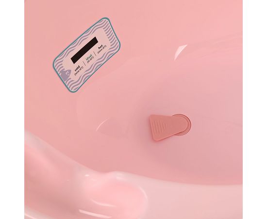 Не нужно переворачивать тяжелую ванночку, чтобы вылить воду — предусмотрена сливная пробка. Встроенный термометр с понятными обозначениями поможет определить идеальную температуру воды для купания малыша (36-38°С). Предусмотрено отверстие для крючка, чтобы ванночку можно было повесить. Для купальных принадлежностей предусмотрены полочки.