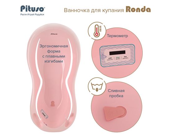 PITUSO Ванночка для купания RONDA слив/термометр 101 см Розовый