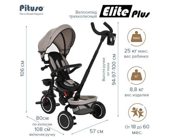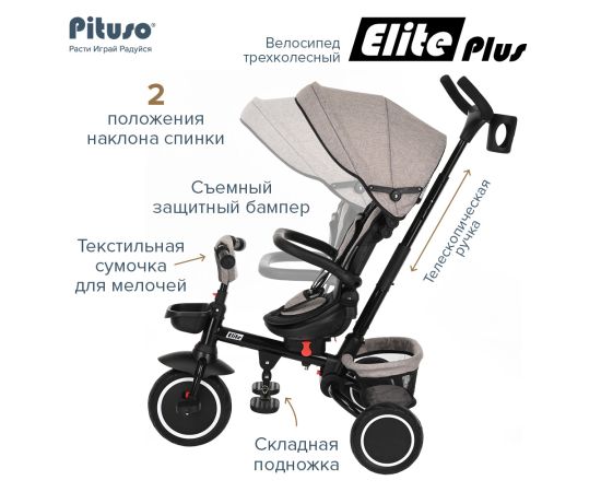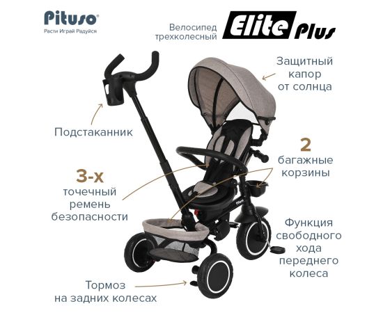 PITUSO Велосипед трехколесный Elite Plus Beige/Бежевый