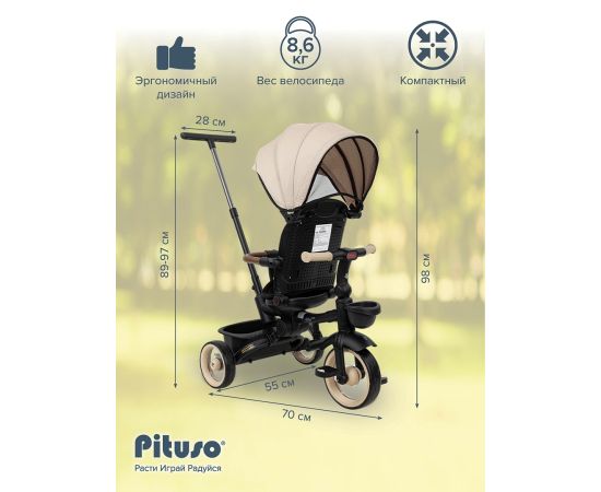 PITUSO Велосипед трехколесный Elite Pro Beige/Бежевый
