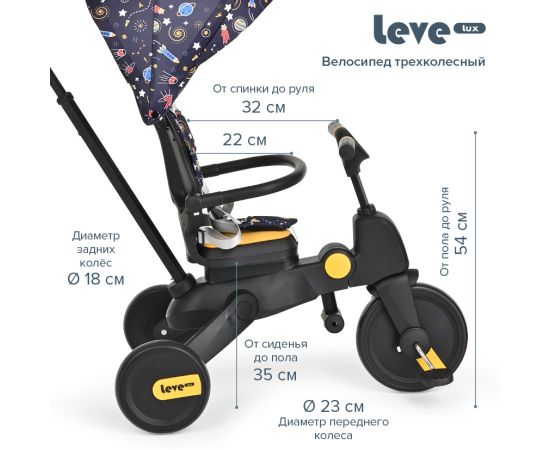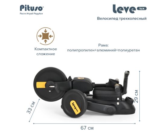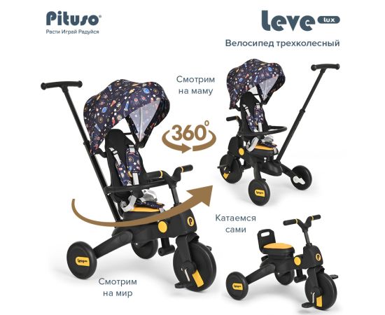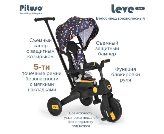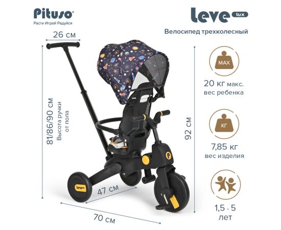 PITUSO Велосипед трехколесный Leve Lux, складной Navy Black/Морской чёрный