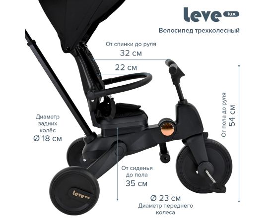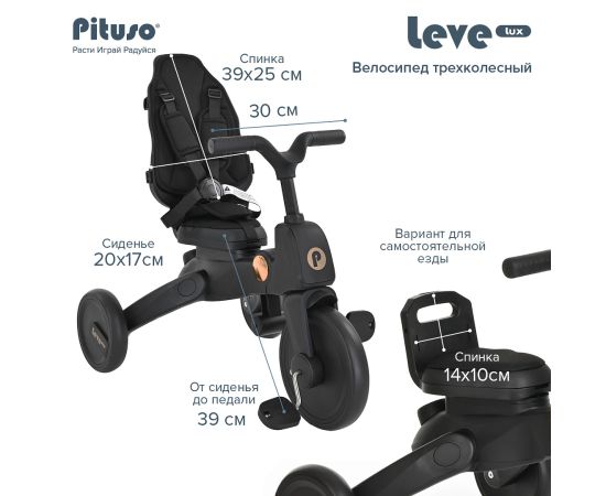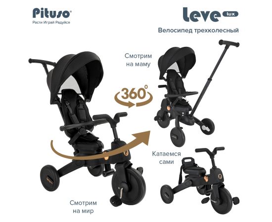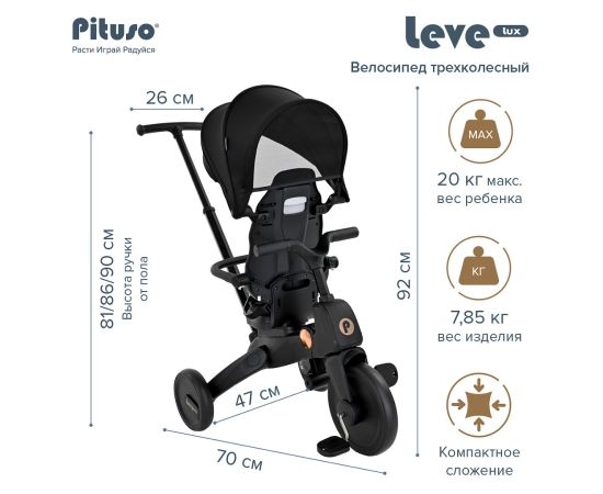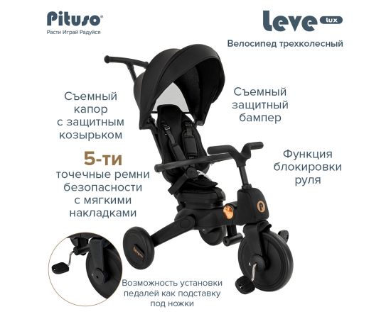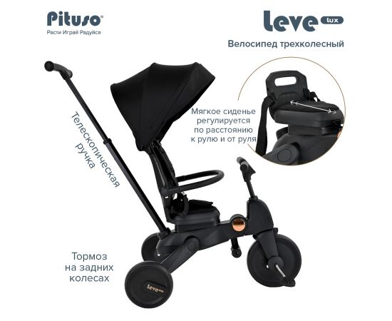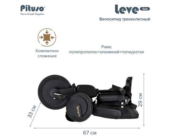PITUSO Велосипед трехколесный Leve Lux, складной, разм. упак. 65х34х31 см, Black/Черный