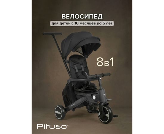 PITUSO Велосипед трехколесный Leve Pro, складной, с сумкой,Black/Черный (чер рама) T8 PLUS-Black-BL