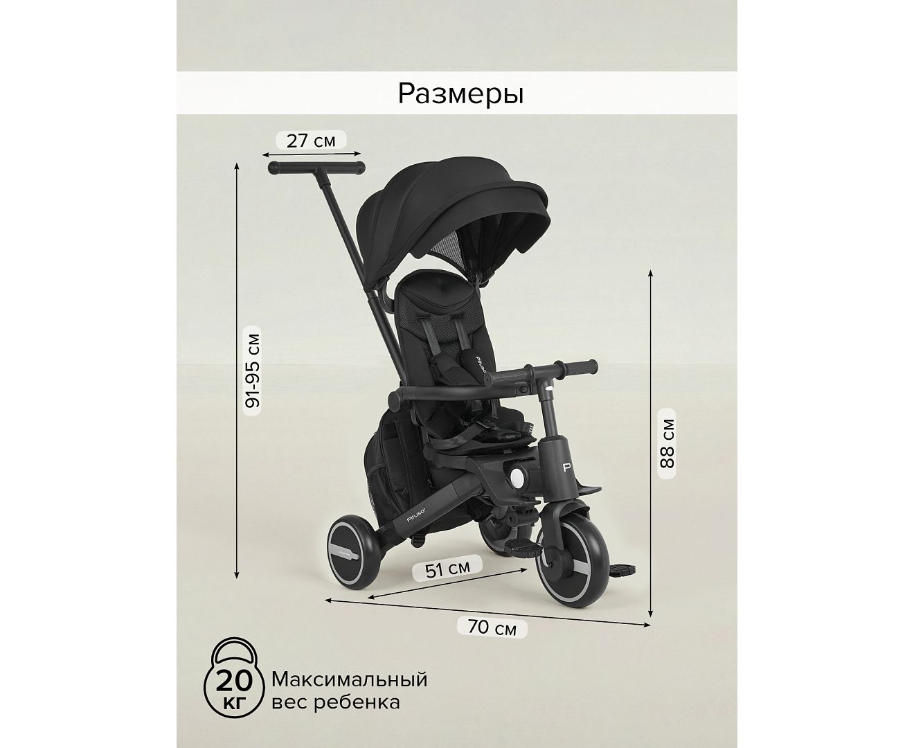 Складной трехколесный велосипед Pituso Leve Pro (2026) — Обновленная версия с переставными педалями и магнитным замком