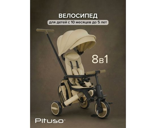 PITUSO Велосипед трехколесный Leve Pro, складной, с сумкой Truffel (beige)/трюфель-беж (беж. рама) T8 PLUS-TRUF-Beige