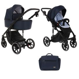 Коляска PITUSO 2 в1 BELLA короб+прогулка Кожа Синий /Рама Черная/Гель.колеса