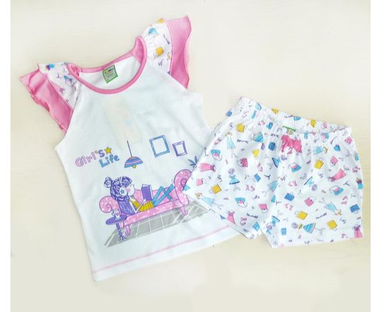 Пижама для девочки белая Girls life- отлично на лето для сна, да и просто как домашний костюмчик! В комплекте шортики и футболка. 100% хлопок.