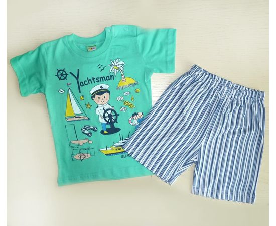 Пижама для мальчика Yachtsman бирюзовая - отлично на лето. Футболка на клепках по плечу. 100% хлопок.