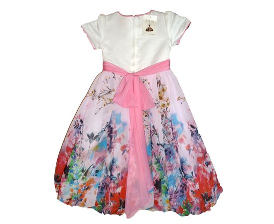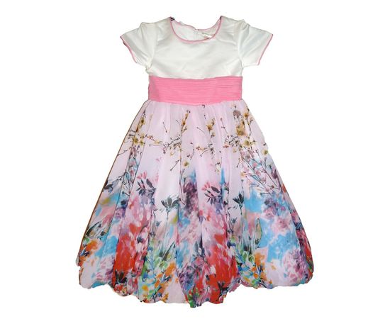 Платье бальное шифоновое с розовым поясом арт1883, 8-9 лет