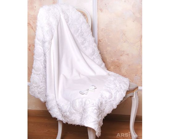 Изысканный плед на выписку из нежного, невероятно приятного на ощупь, вебьбоа украшен объемными розами по краям. Плед придется по вкусу любителям сдержанной классики. В нем сплелись утонченность, практичность и невероятная гармония.