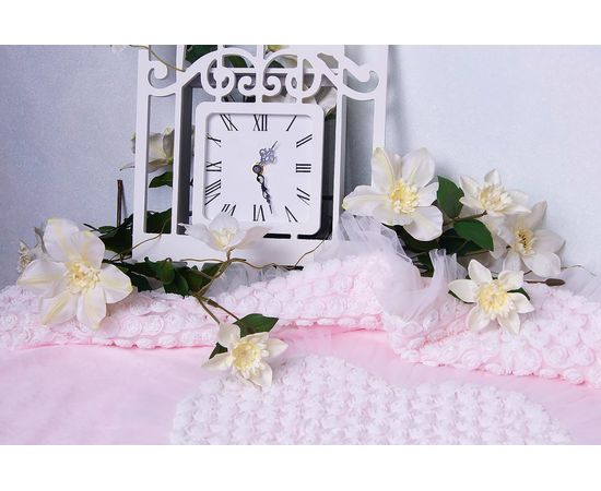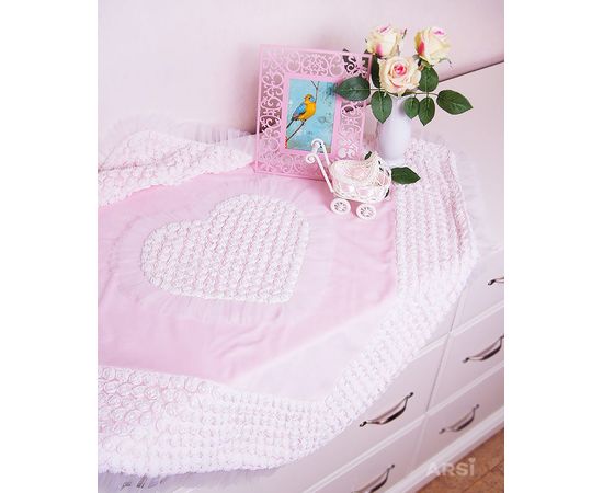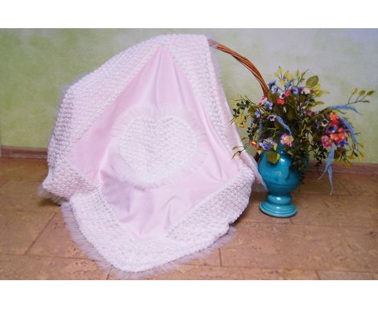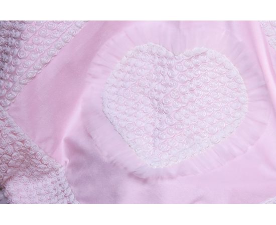 Плед на выписку для девочки с рюшечками и розочками — милое украшение торжественной выписки новорожденной малышки из роддома. Огромное сердце в центре пледа — символ безграничной материнской любви к своему маленькому ангелочку.