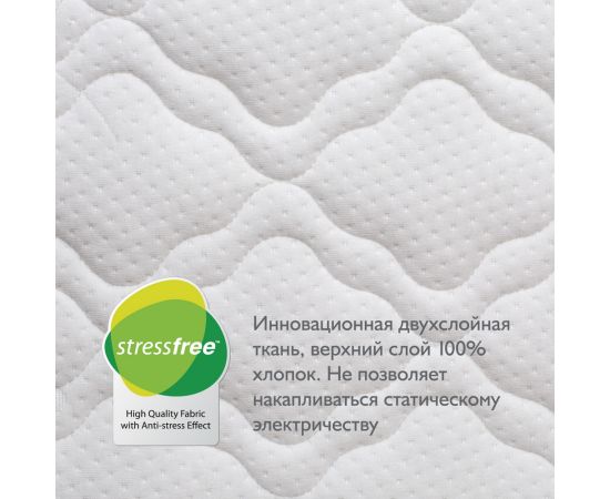 Съемный чехол из двухслойной стеганой ткани нового поколения StressFree нормализует сон ребенка. Верхний слой ткани – 100 % хлопок, нижний – пористый, дышащий материал. Благодаря специальной обработке чехлы StressFree снимают и выводят в воздух статический заряд, возникающий при трении тканей постельного белья и пижамы, что успокаивает нервную систему.