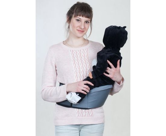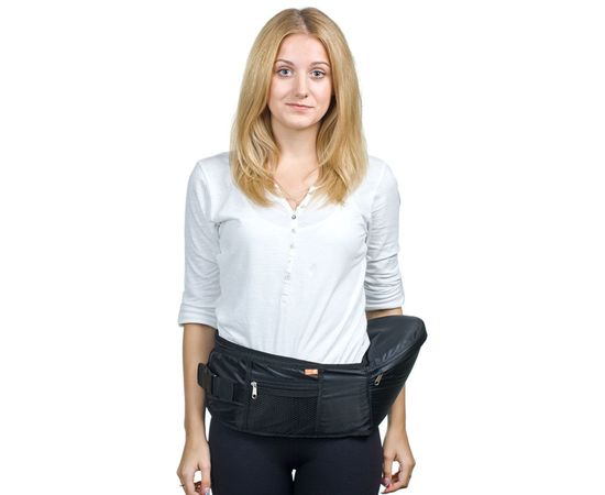 Хипсит представляет собой широкий пояс с сиденьем для ребенка, который застегивается вокруг маминой поясницы. Малыш располагается на бедре родителя в привычной, естественной позе – а вредные нагрузки «на изгиб» позвоночника, неизбежные при таком ношении на руках или в слинге, отсутствуют.