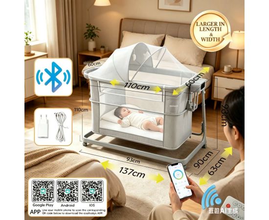 Приставная люлька-колыбель для новорожденного, с автоматическим укачиванием. Для малышей с рождения и весом до 18 кг.