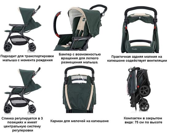 • Преимуществом коляски является быстрота и легкость складывания с помощью кнопки по типу "книжка", которая находится на ручке