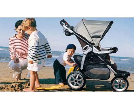 Прогулочная итальянская 3-х коляска коляска Peg-Perego GT3 Completo - коляска для любых дорог. Благодаря широкому устойчивому шасси и надувным колесам на шариковых подшипниках - коляска может ездить не только по всем типам дорог, но и по бездорожью.