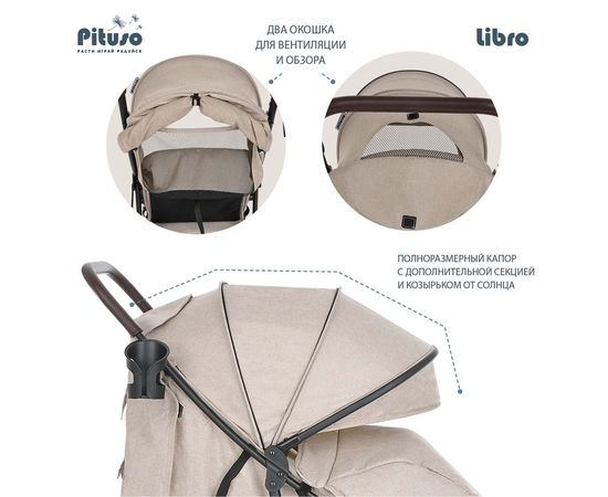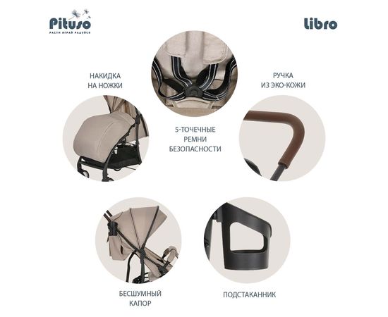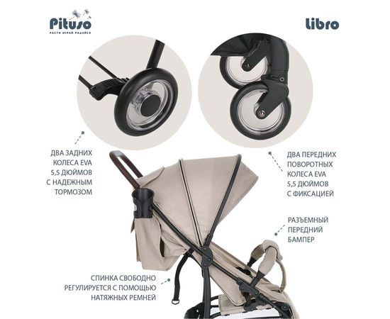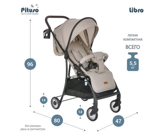 Прогулочная коляска Pituso Libro — это модель облегченной детской коляски для прогулок с ребенком в возрасте от 7 месяцев до 3-х лет.
