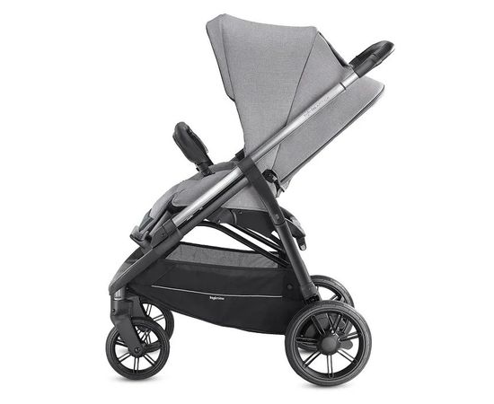 компактное шасси всего 50 см в ширину складывается одной рукой благодаря запатентованной нами системе складывания по типу книжкав сложенном виде модель устойчива, обладает компактными размерами, земли ручкой не касаетсярегулируемая по высоте ручка (4 позиции) декорирована вставками из искусственной кожи, сочетающимися с деталями отделки на основной обивкебольшие амортизированные колеса с шариковыми подшипниками идеально подходят для прогулок по местности с любым рельефом; передние колеса с функцией вращения и блокировки составляют в диаметре 190 мм, тогда как задние - 260 ммналичие единого автоматического устройства торможения колес служит гарантией безопасности при движениипросторная корзина для вещей с усиленным дном, оснащенная карманом на молнии; благодаря тому, что контур выполнен из светоотражающего материала, вечерние прогулки стали еще безопаснеевстроенный подстаканник.Комплектация: