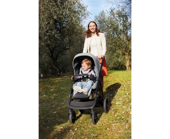 Она легко преодолевает сложные препятствия благодаря уникальному шасси с системой ADAPTIVE CRUISE и большим колесам (передние диаметром 215 мм, задние диаметром 290 мм) с инновационныой структурой резинового покрытия, включающей в себя два различных слоя, которые поглощают вибрации, передаваемые на коляску и рукоять шасси неровностями дорожной поверхности.