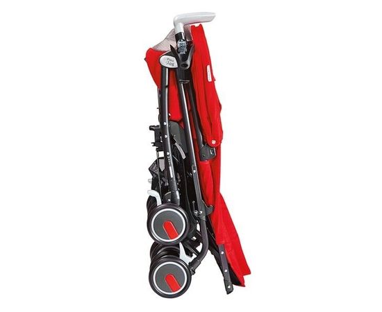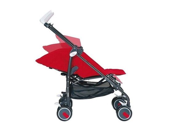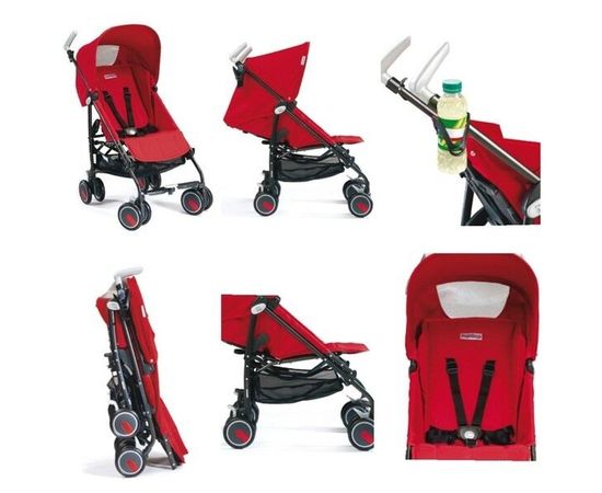 В сложенном состоянии очень компактна и может размещаться вертикально. В таком положении поместиться в багажнике любого легкового автомобиля. Легкость, миниатюрность и практичность коляски позволяют чувствовать полный комфорт при прогулках. Складывается зонтиком с помощью лишь одной руки без усилий. Спинка коляски имеет три фиксированных положения и откидывается практически горизонтально, поэтому может использоваться для прогулок с детьми с первых месяцев рождения. Ручка коляски оснащена держателем для бутылочки, а на капюшоне имеется крепление для игрушек. Сбоку коляски имеется ручка для переноски. Ручка коляски в сложенном виде используется для перемещения на 2-х колесах.