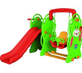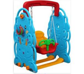 Игровой центр "Слоник". Широкие ступени и надежные поручни помогут ребенку подниматься на горку самостоятельно, боковые стенки конструкции имеют рельефную структуру, что обеспечивает дополнительную безопасность. В наборе качели, оборудованные для безопасности малыша бампером и баскетбольное...