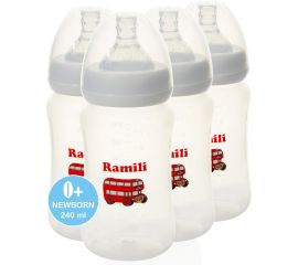 Набор из 4-х противоколиковых бутылочек Ramili Baby 240MLX4 (240 мл. x4, 0+, слабый поток)