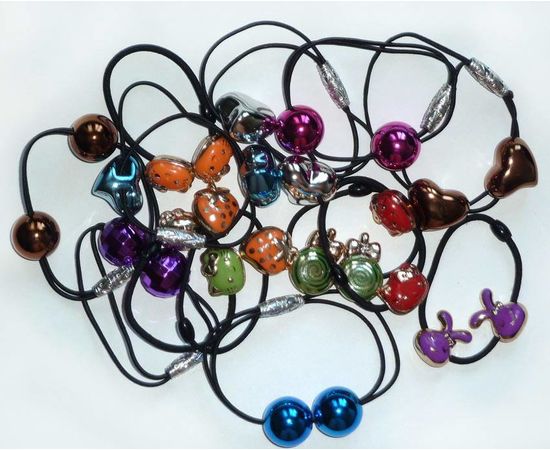 Резинка черная Двойной шарик - различные варианты исполнения - сердечки, клубнички, мордашки, шарики. Цена за 1 шт.
