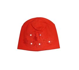Шапка трикотажная красная с мелкими цветочками 0-6мес - отлично на весну-осень. С красивой аппликацией в виде маленьких, нежных цветочков. Размер один: 0-6 мес.