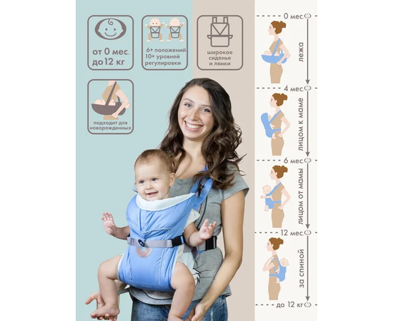 - Адаптирован для переноски малышей с рождения и до полутора-двух лет