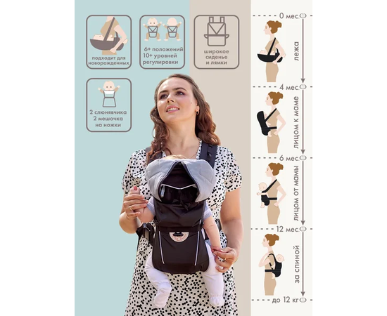 - Конструкция абсолютно безопасна, поэтому малыш не выпадет, даже если вы случайно расстегнете не ту пряжку