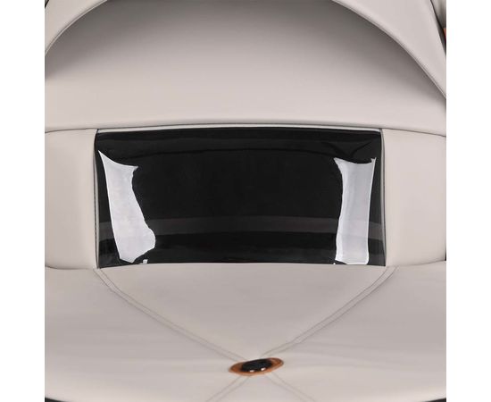 Накидка на люльку имеет дополнительный отворот со смотровым окном, сам отворот полностью закрывает ребенка от непогоды и крепится за счёт магнитов.
