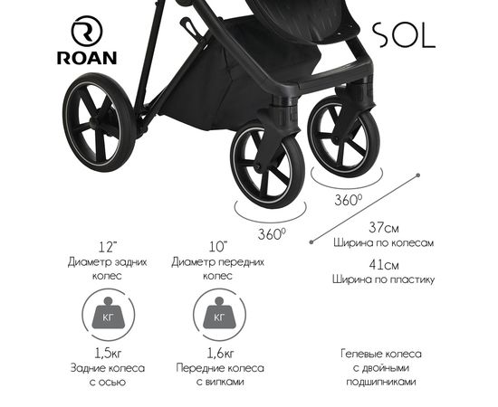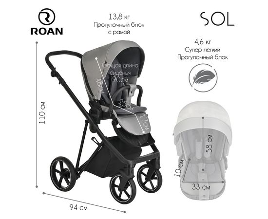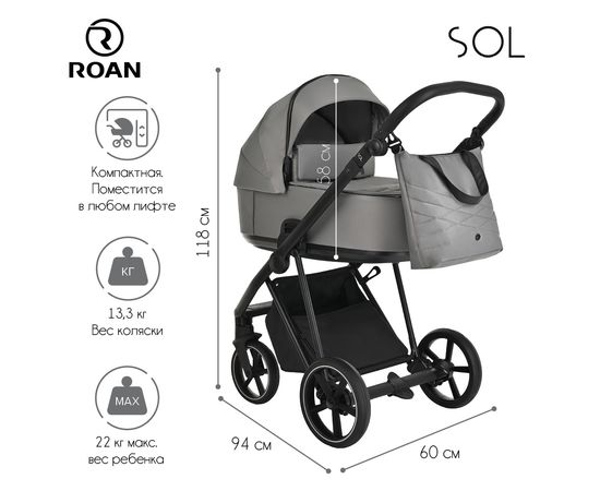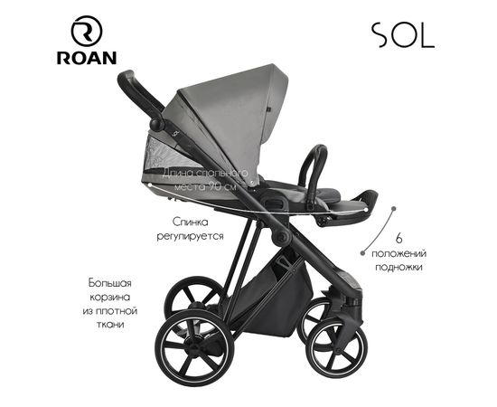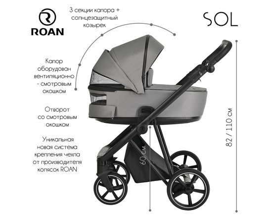 Многофункциональная модульная коляска Roan SOL– это детская коляска высокого качества в идеальном исполнении, которое заметно с первого взгляда.