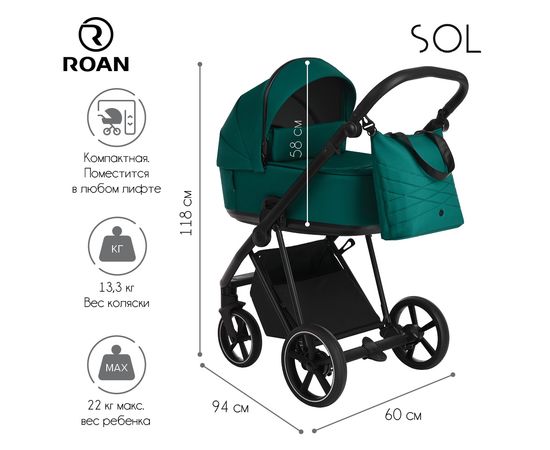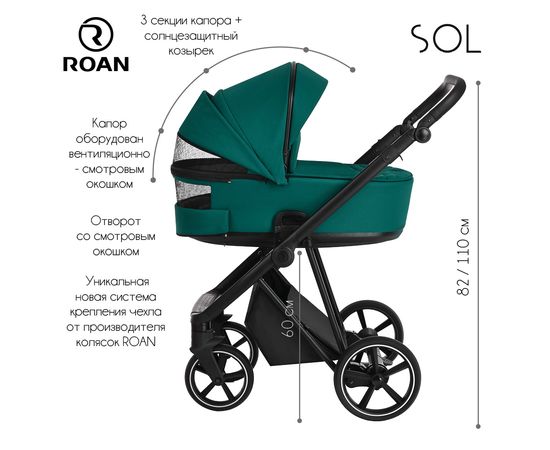 Многофункциональная модульная коляска Roan SOL– это детская коляска высокого качества в идеальном исполнении, которое заметно с первого взгляда.